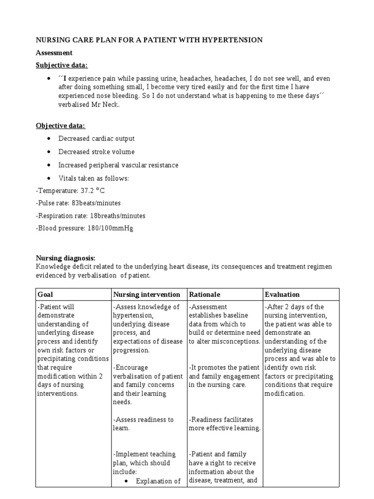 Nursing Care Plan For Hypertension Zpnx1128dylv