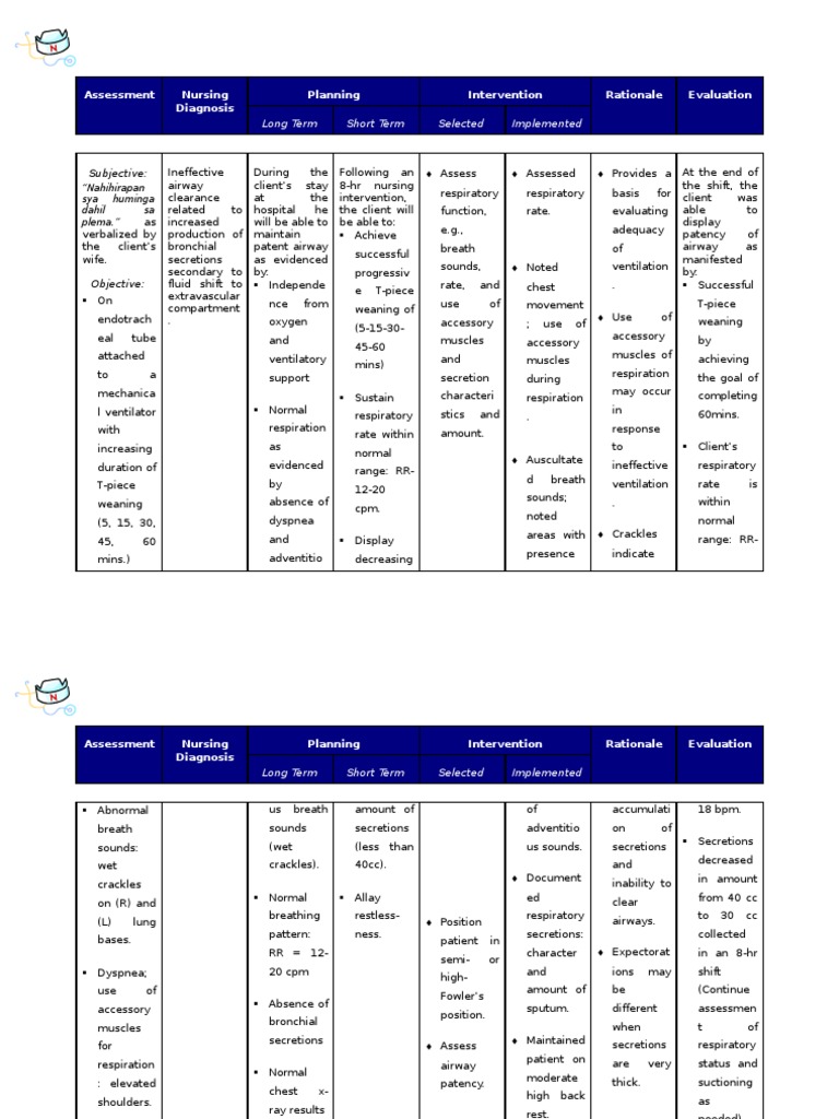 Nursing Care Plan For Ineffective Airway Clearance Pdf Breathing Respiratory Tract
