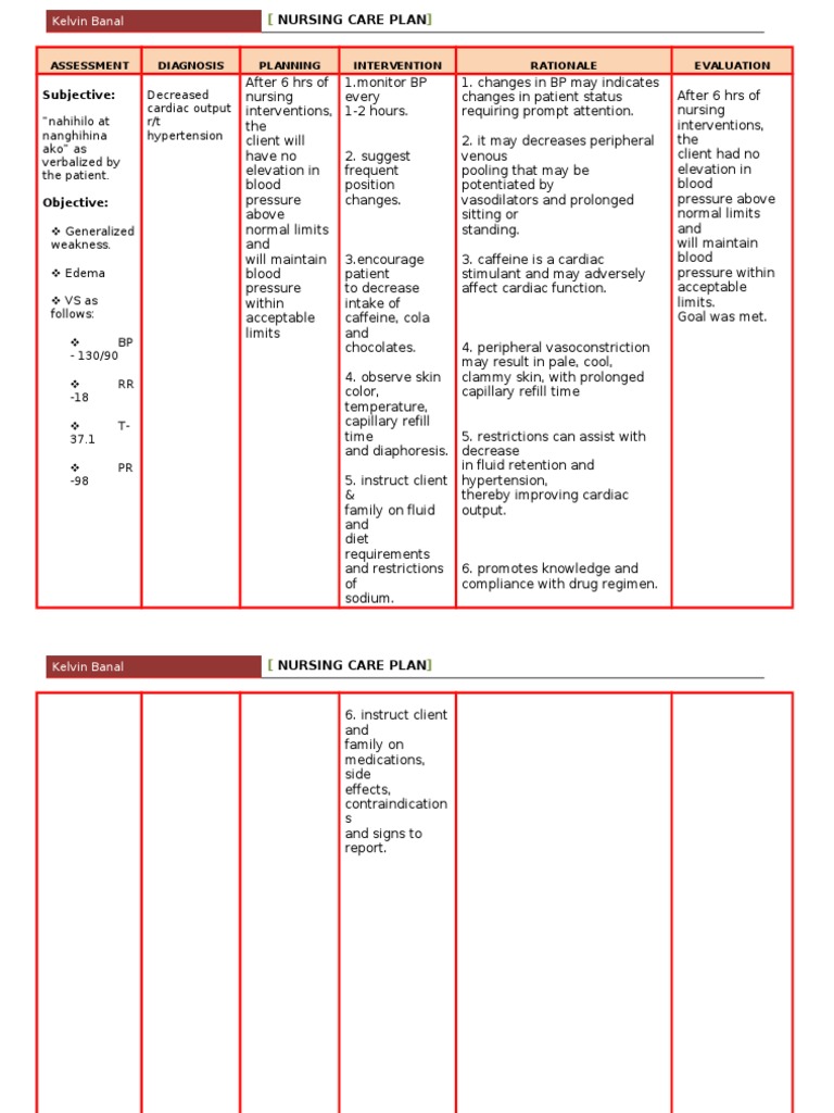Nursing Care Plan For Hypertension Pdf Hypertension Heart